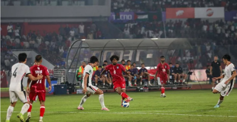শুরুটা দুর্দান্ত করেছিল বাংলাদেশ। ম্যাচের ম্যাচের ১৩ মিনিটে ফ্রি কিক থেকে গোল করে দলকে লিড এনে দেন হামজা চৌধুরী। এরপর তি